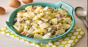 Every time there is a family get-together or a special occasion, my mum and grandmother prepare this recipe for Russian salad. To make this a vegetarian dish, omit the gammon. After cooking, the potatoes, carrots, and eggs do not need to be cooled fully. This salad is known as “Salatka …